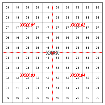 Use the first four digits of the Parcel Identification Number (PIN) to select the appropriate map P 6835. Please notice you have the option of P 6835.01, P 6835.02, P 6835.03 or P 6835.04. This is due to the map being cut into quadrants. You will use the middle two numbers of the PIN to locate the quadrant you need. Using the Quadrant Grid map you will see that block 36 is in quadrant 01. So, you will select P 6835.01 from the list.