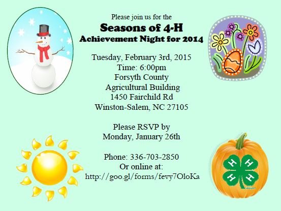 You are invited to attend our 2014 4-H recognition banquet on February 3 at 6 PM. See attached invitation.