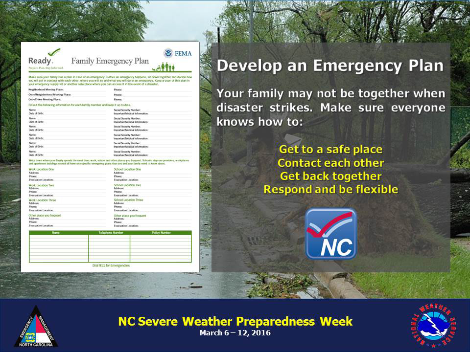 “Spring is a time when the weather is extremely unpredictable,” said Winston-Salem/Forsyth County Emergency Management Director Melton Sadler. “Weather conditions can rapidly deteriorate, and severe storms and tornadoes can pop up any time of the year. It’s critical for residents to know the warning signs, what to do and where to go when severe storms and tornadoes threaten. Having a plan in place and listening for weather alerts is the first step in being ready for any weather-related emergency.”