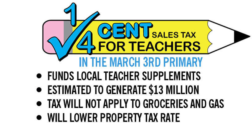 Learn about the ¼ Cent Sales Tax for teachers on the primary ballot