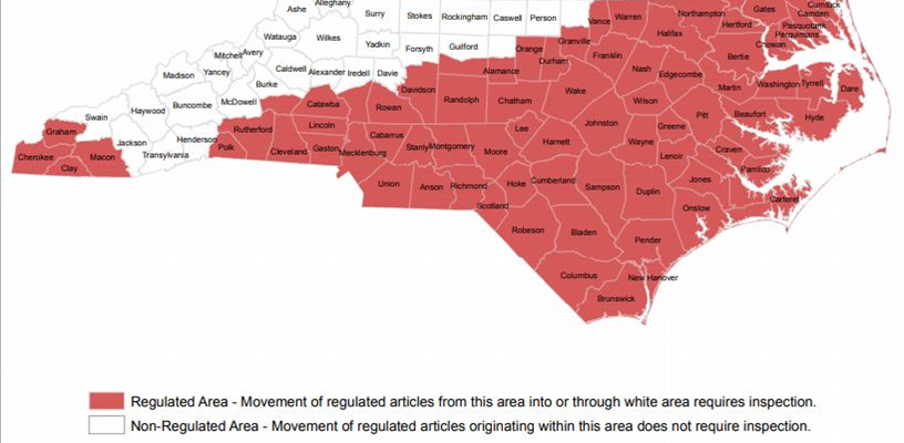 Many livestock owners are buying hay now that it's been harvested. Before importing hay from a county that is colored in red in the Fire Ant importation Map , the hay must be inspected for Fire Ants by the North Carolina Department of Agriculture and Consumer Services (NCDA&CS). According to them, "residents and business owners in those (red) counties will now need to obtain a permit before moving plants, sod and related equipment into or through non-infested areas. Certificates can be obtained from a local plant protection specialist or by contacting the Plant Protection Section at 800-206-9333 or 919-707-3730."