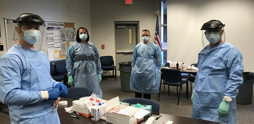 The Forsyth County Department of Emergency Services continues to operate on the frontlines of the COVID-19 pandemic response and recovery efforts. Last week, the Mobile Integrated Health Program, with its nine Community Paramedics, were tasked by Public Health to test all staff and inmates at the Forsyth County jail. In partnership with the Forsyth County Sheriff’s Office, the nine Community Paramedics were able to test over 900 persons at the jail in one and a half days.
