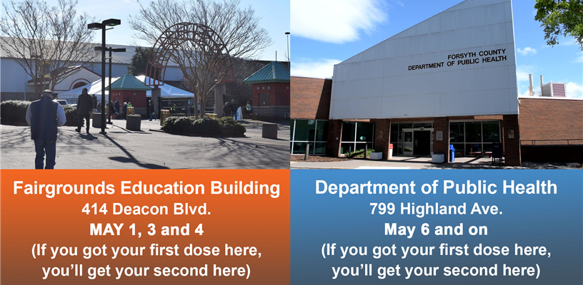 Vaccinations are free and no ID or insurance is needed. Appointments are available online at Bit.Ly/FCNCCovidVaccine or by calling 336-360-5260 from 8 a.m. -5 p.m. Mon.-Fri. First dose appointments will be held at the Winston-Salem Fairgrounds, 414 Deacon Blvd, through May 4. Starting on May 6, first dose appointments will be held at Forsyth County Department of Public Health, 799 N. Highland Ave. The vaccination site that an individual received their first dose is where they’ll return for their second dose.