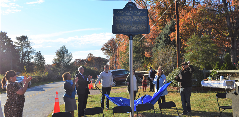 The historic marker for the Donald & Virginia Stroble Farm was unveiled in Pfafftown on Sunday by the Forsyth County Historic Resources Commission.