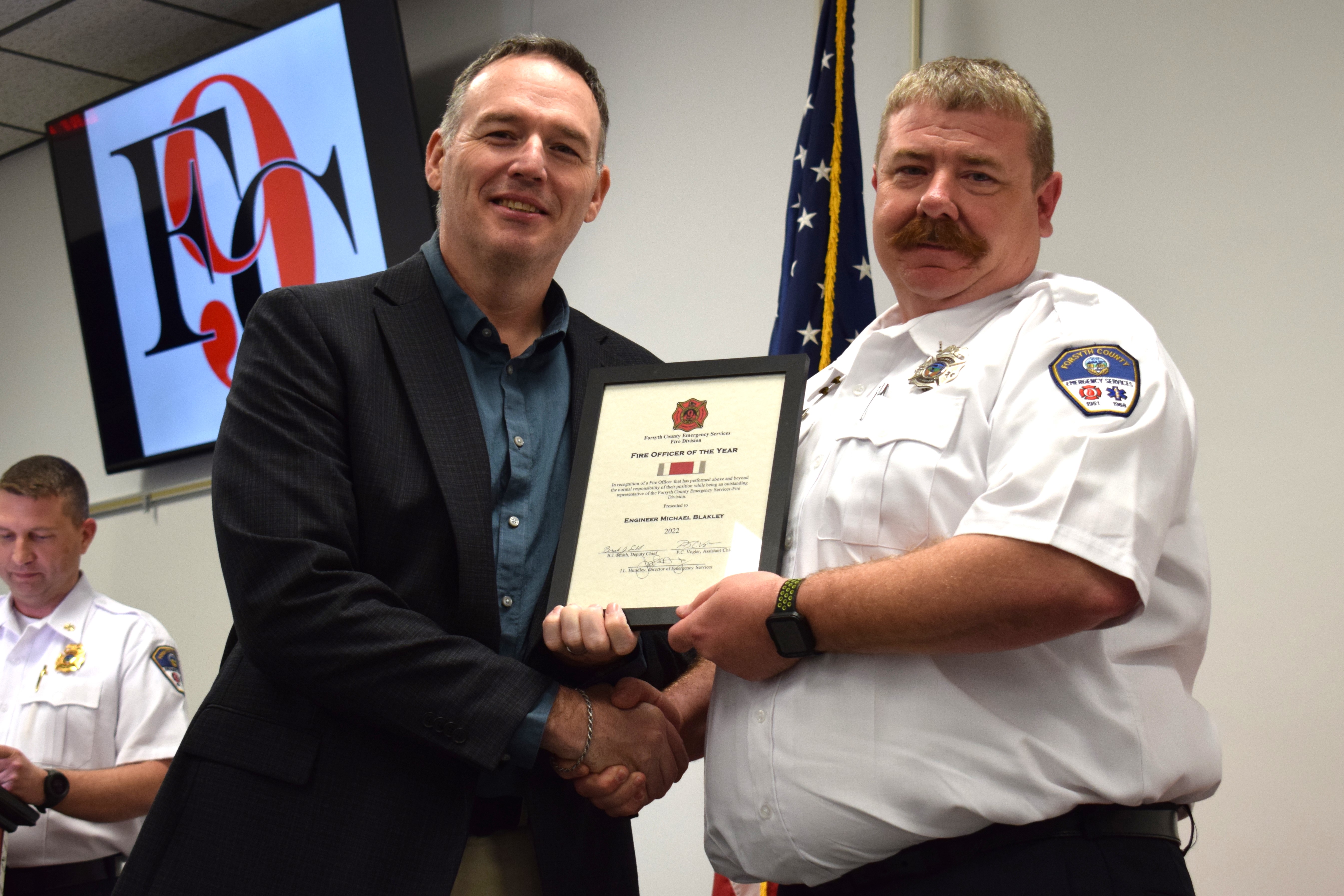 Engineer Mike Blakley receives a Fire Officer of the Year