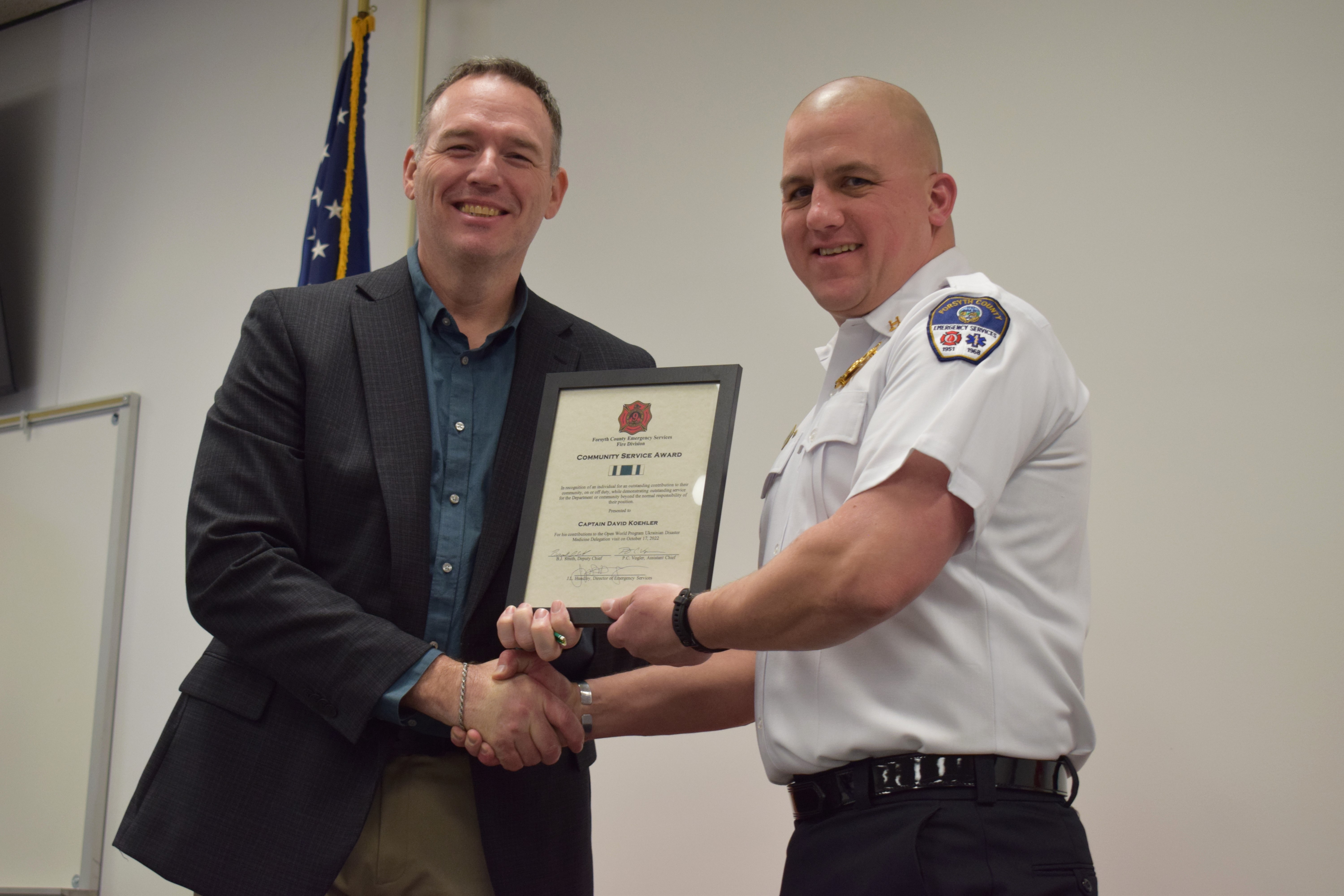 Captain David Koehler receives a Community Service Award