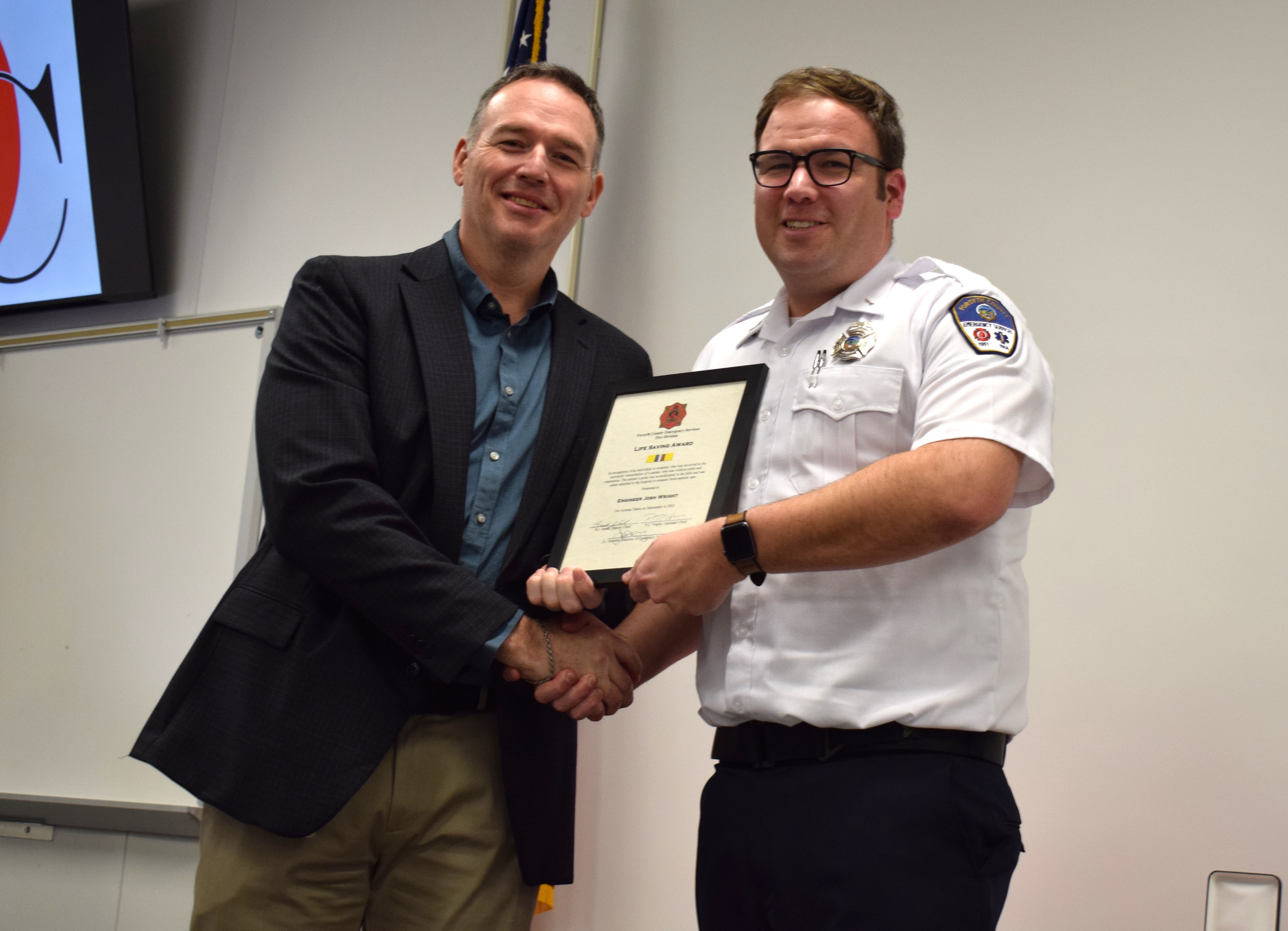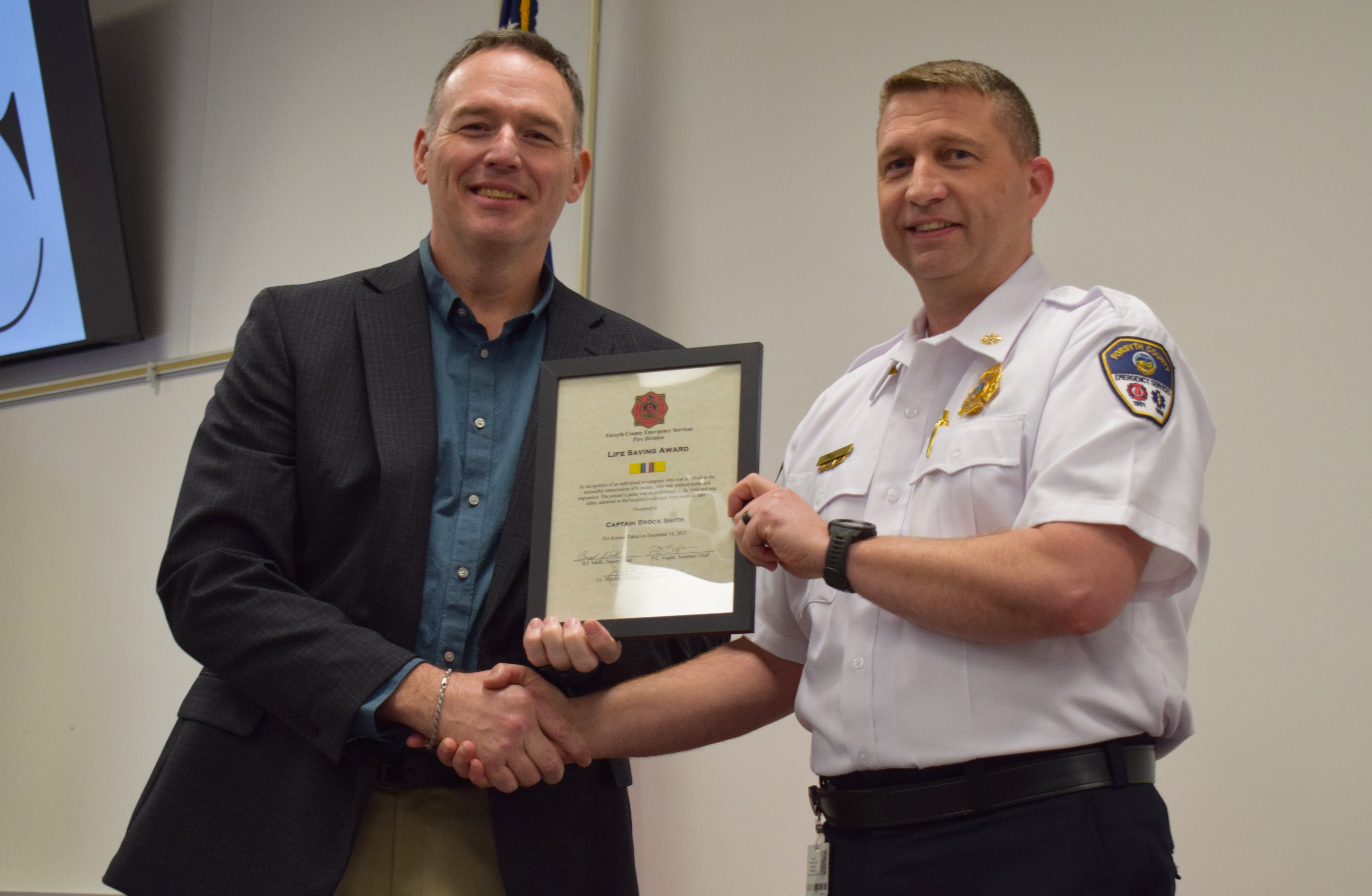Fire Marshall Brock Smith receives a Life Saving Award