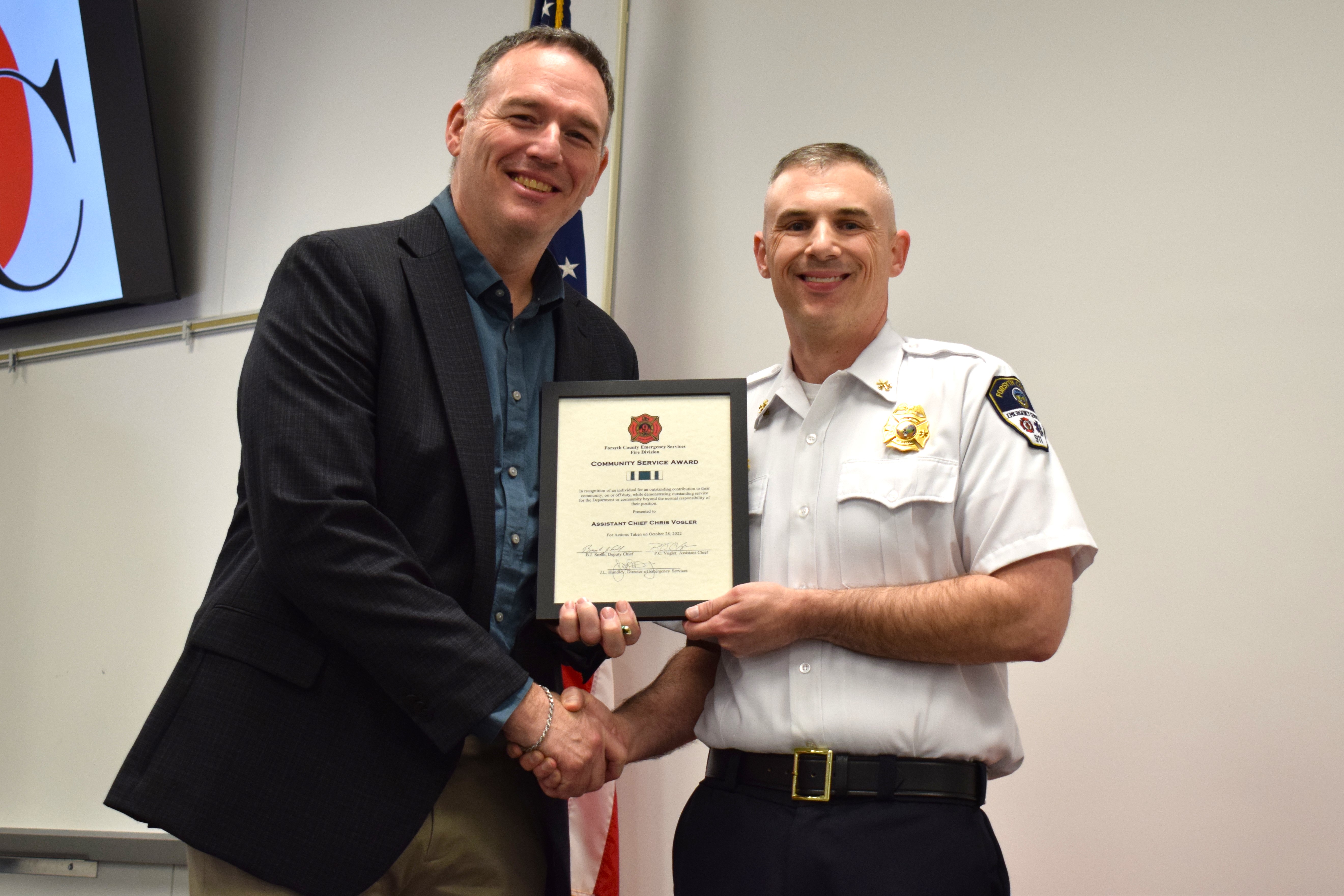 Assistant Chief Chris Vogler receives a Community Service Award