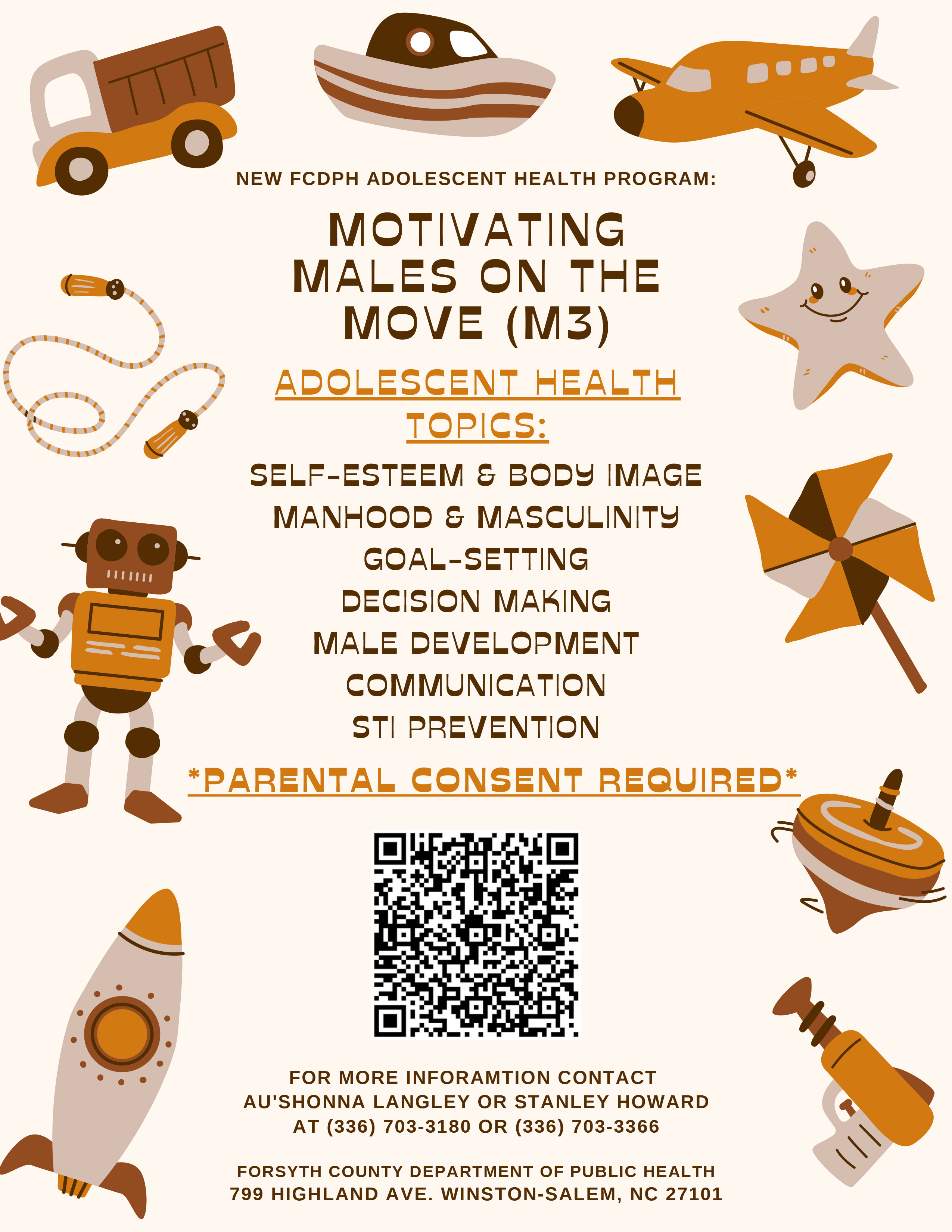 Forsyth County Department of Public Health is planning to create a program for young males ages 9-13 called Motivating Males on the Move (M3).