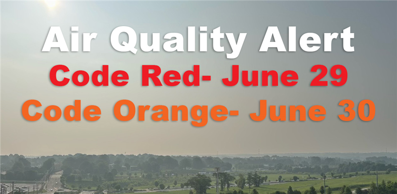 A Code RED air quality alert has been issued for Thursday, June 29th as levels of particle pollution reach levels considered unhealthy for the general public. A Code ORANGE air quality alert has been issued for Friday, June 30th due to anticipated levels of particle pollution becoming unhealthy for sensitive groups.