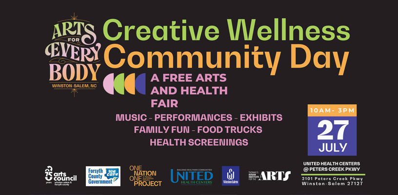 Creative Wellness Community Day 2024 will be held at United Health Centers, 2101 Peters Creek Parkway, on July 27 from 10 a.m.-4 p.m. featuring a day of arts, wellness and family fun.