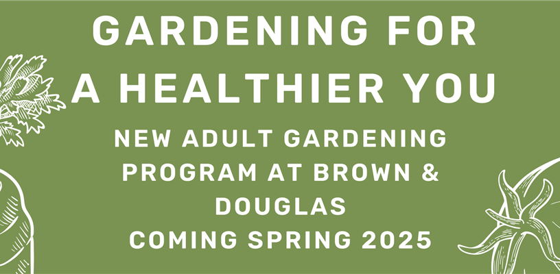 A new, adult gardening program will be taking place at Brown & Douglas Neighborhood Center beginning in May. Learn about nutrition, physical activity, and introductory gardening techniques. Sessions will include hands-on experiences in a community garden.