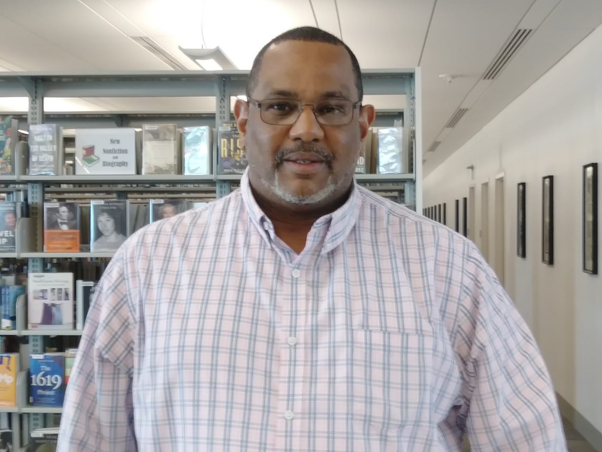 Forsyth County Peer Support Specialist, Jose Perez, a member of the Behavioral Health Services Team, is primarily located at the Central Library and directs individuals to essential services such as housing assistance, medical services, behavioral health services, and financial services.