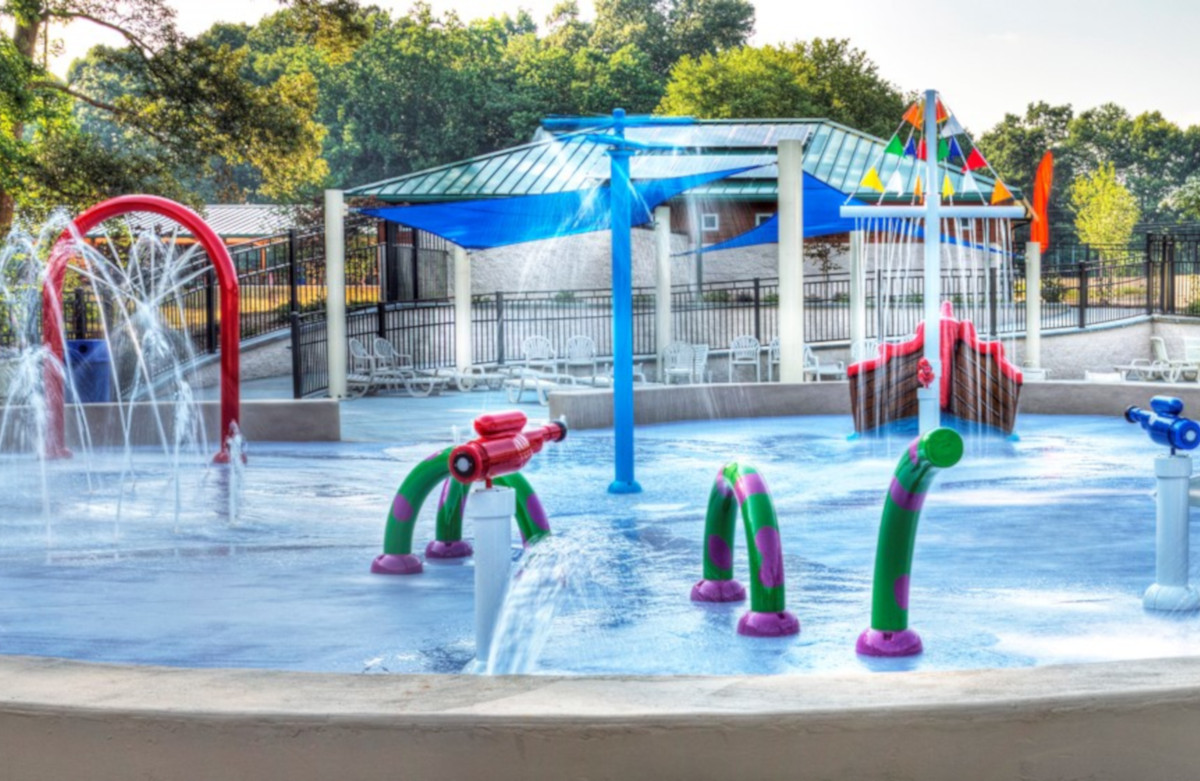Located in the heart of Tanglewood Park is the Peter S. Brunstetter Aquatic Center. The Aquatic Center features 4 sections for all members of the family to enjoy! A zero depth entry wading pool with 3 large water features, a splash pad featuring water features for the little ones to enjoy, a large main pool with 2 diving boards and 2 slides (48” height requirement), and a winding tubing river which includes 2 slides of its own.